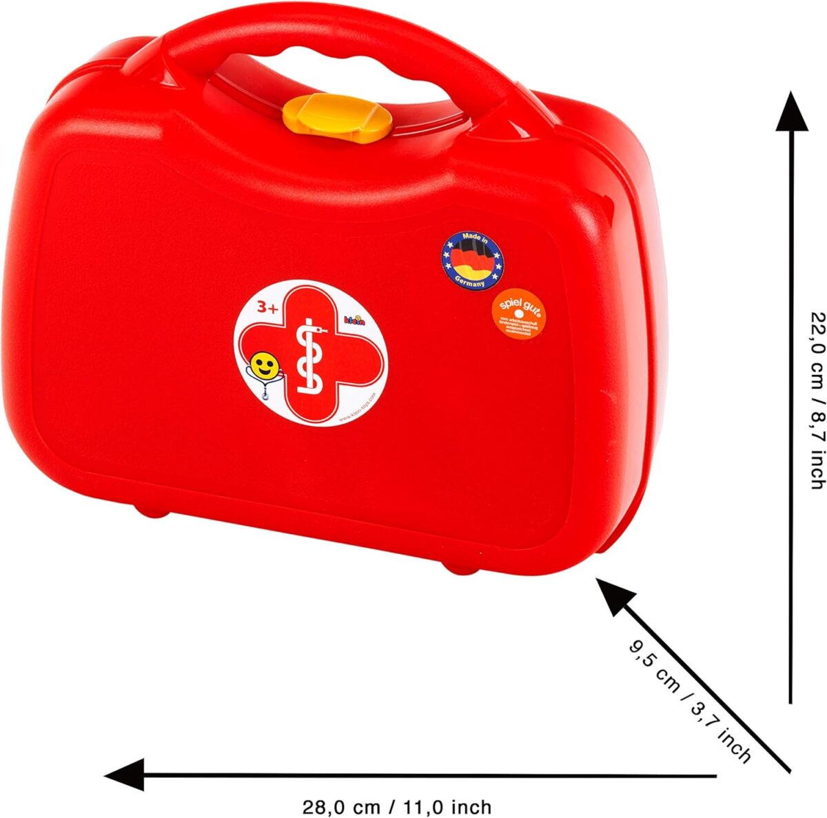 - Accesorios incluidos: Estetoscopio, termómetro, jeringuilla, pinzas, tijeras, otoscopio, martillo de reflejos, venda y más